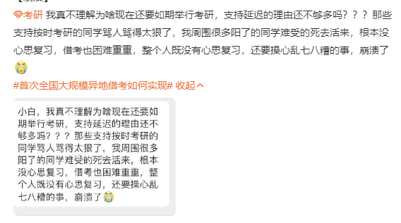 看到有同学非常焦虑,害怕因为考研而感染,强烈要求考研延期,还没开始考心态已经崩了。
